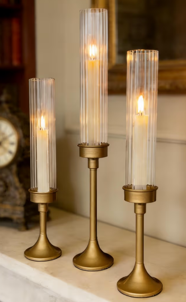 Taper with glass chimney (36 available) - $10